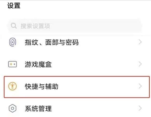 1、打开设置,点击进入快捷与辅助。
