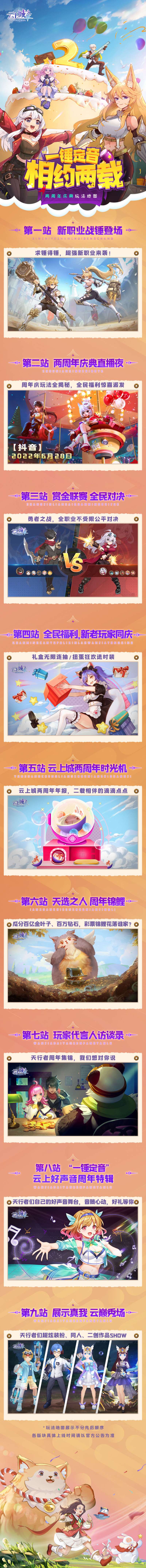 天行者们一定也很好奇,在云上城两周年会有什么好看、好玩的事情发生呢?米娜从策划大大的抽屉里发现了这张“两周年庆典玩法地图”,内容竟然如此丰富!大家赶紧保存,有了玩法地图不迷路哟~~让我们先睹为快吧!