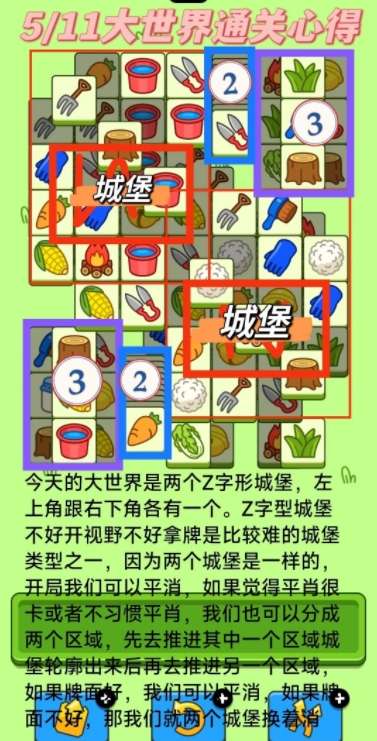 今天的大世界是两个Z字形城堡,左上角跟右下角各有一个。