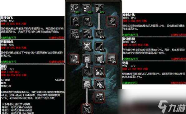 这里位大家推荐一套PVE用得毁伤匕首贼天赋加点方法供大家讨论和参考。有人说“奇毒”和“快速恢复”没必要加,应该加到无情上面去,一星切割循环 快速恢复,只要命中够的话,技能攻击不会出现“未命中”,“奇毒”就更没用了,就是个PVP天赋,不知道对不对。