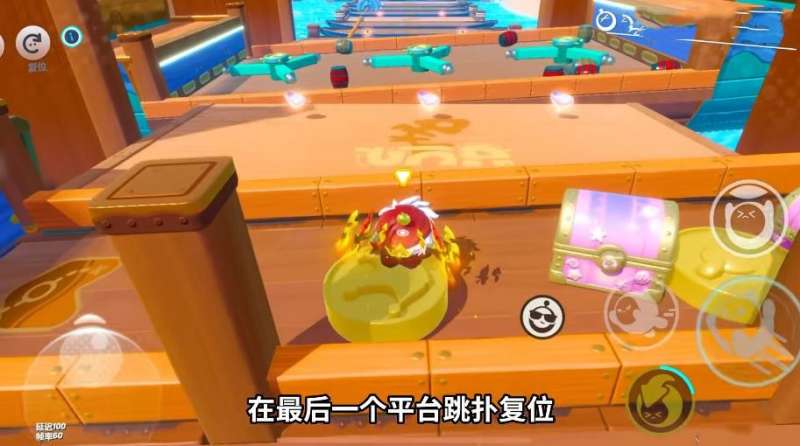 2、前面起跳刚好可以踩上齿轮,接下来就是继续简单连跳,在最后一个平台跳扑复位;