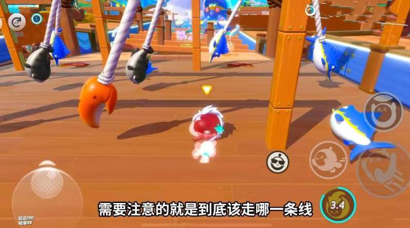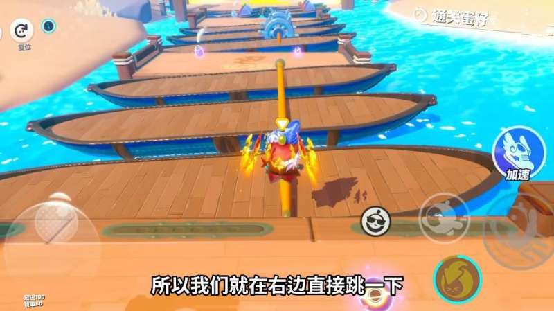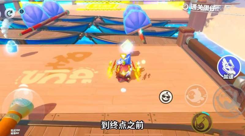 6、到终点前,扇页面积很大,很容易撞到,所以我们走船只的偏左边一些,最后跳扑进入终点。