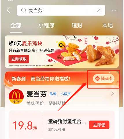 方法一:支付宝搜索关键字,可以领取额外福卡。(注意,并不是百分之百得,依旧是抽!)