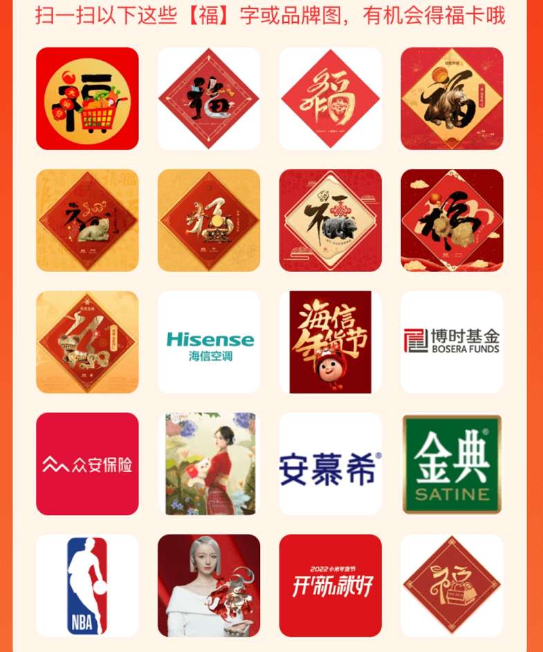 方法二:扫下方品牌图得额外福卡(不占用普通扫福次数)