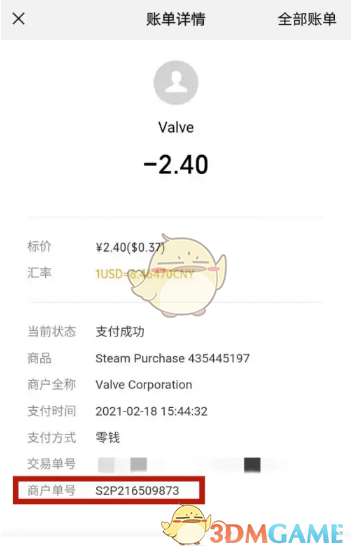1、在购买了游戏之后会得到一个交易记录,可以看到交易记录的最后一行其实就是交易号。