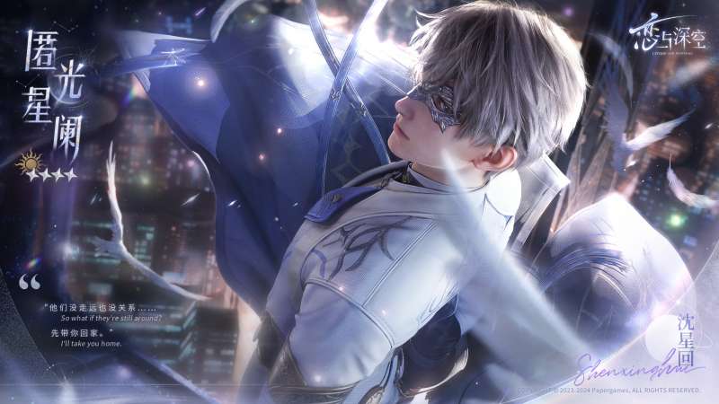参与活动,即可免费获取四星日冕套装思念「沈星回·匿光守护」、「沈星回·匿光星阑」、三星思念「沈星回·真容」、「深空许愿券·限时*10」、「钻石*500」、双人拍照动作、限定称号等缤纷奖励!