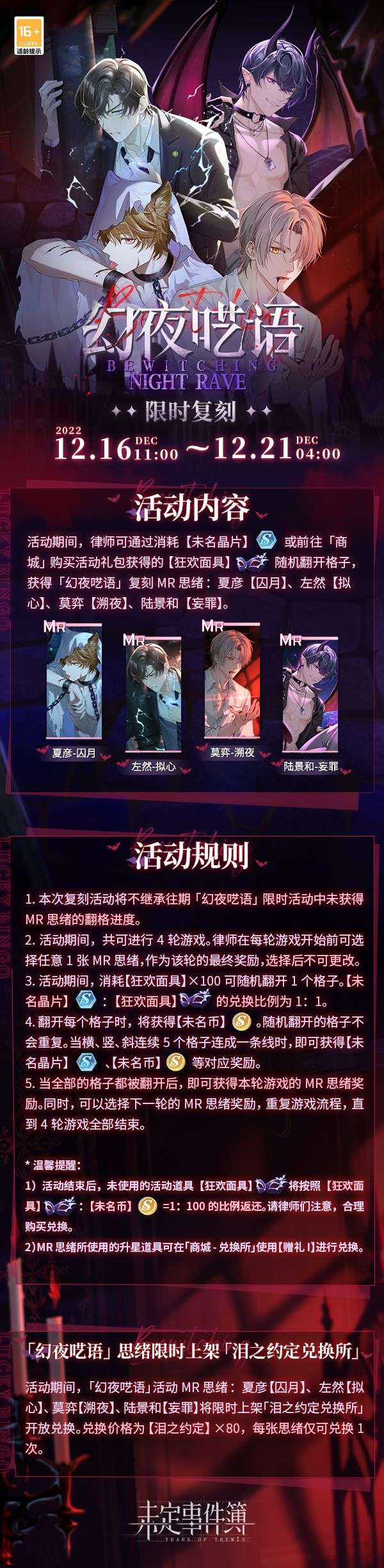 未定事件簿幻夜呓语活动限时复刻 12月16日 与他共赴暗夜 谱写奇幻篇章