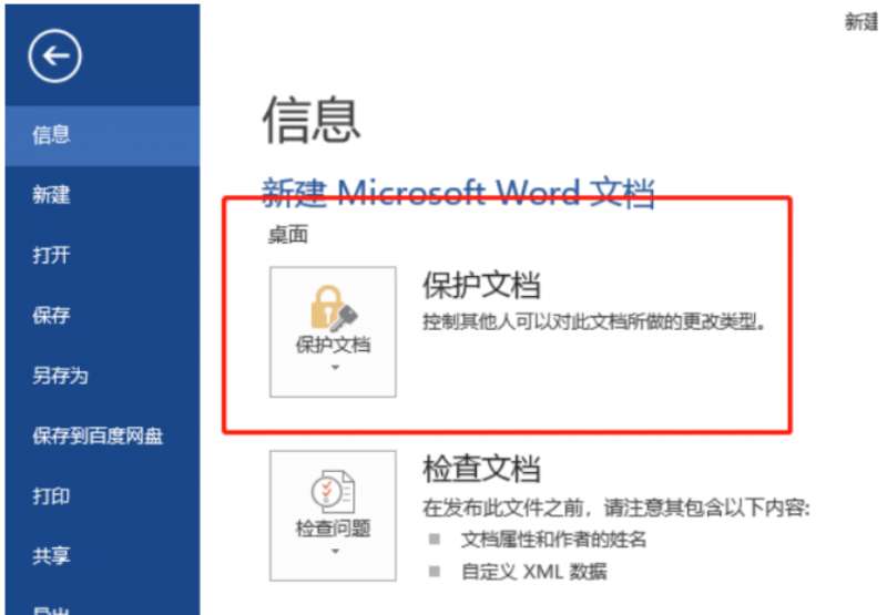 3、在弹出的下拉菜单中,找到右侧的【保护文档】选项,这是设置文档安全性的关键步骤。