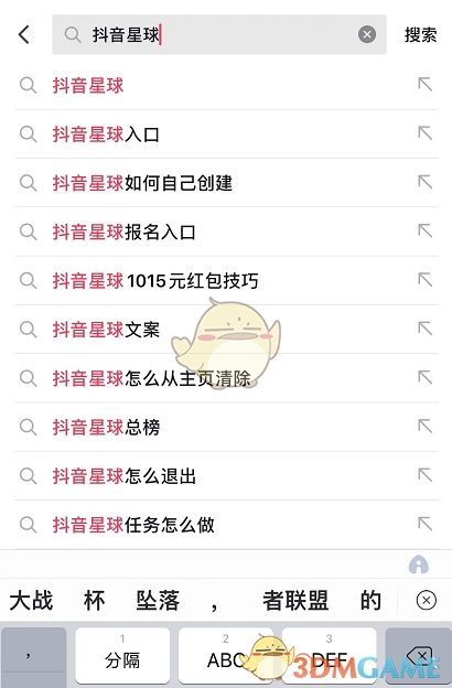 1、打开抖音app,搜索【抖音星球】,点击小程序进入。