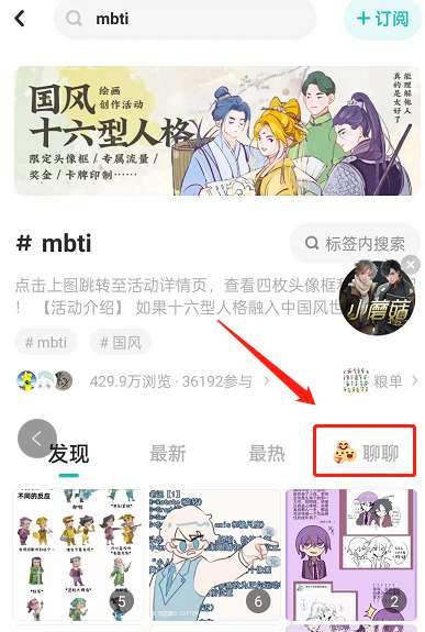 1、打开LOFTER,点击进入一个tag,点击聊聊。