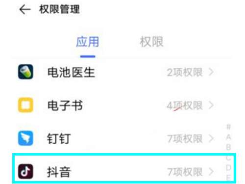 3、选择抖音,点击想要设置的权限进行设置即可。