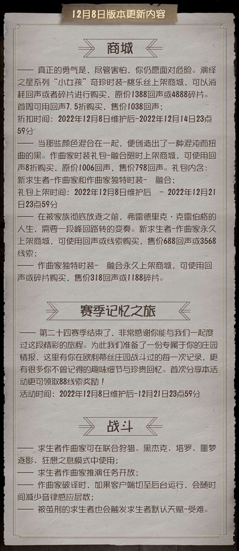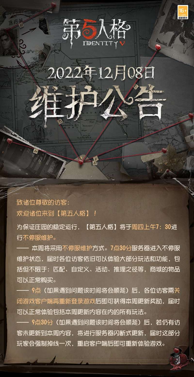 #第五人格# #第五人格维护公告# 2022年12月8日:
