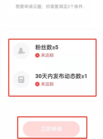 4、要申请云圈的话,要满足以下两个条件,满足即可立即申请。