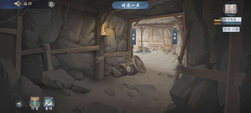 1.进图与墨家对话之后,通过后街→马厩→井底,进入暗道。暗道通过顺序为:左→右→左。