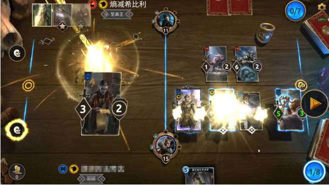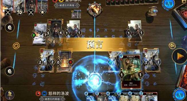 另外一个重要的特色在于符文与预言机制。双方玩家开局都有30点生命,每损失5点生命,便摧毁自身1个符文碎片。同时获得一次即时抽取卡牌的机会,如果抽到的卡牌是预言牌,则可立刻零费打出。这就是游戏的“符文”与“预言”特色机制。该玩法机制显著提高了战局的乐趣,即使是处于劣势的玩家也很有可能扭转局势。