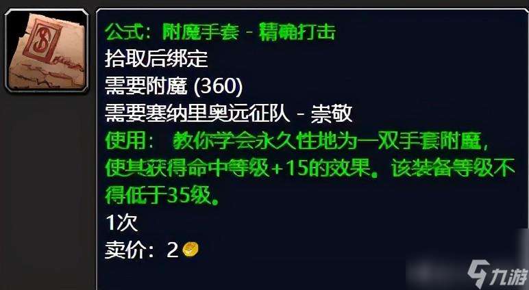 公式:附魔手套 - 精确打击系塞纳里奥远征队声望崇敬购买。