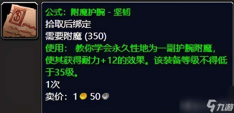 公式:附魔护腕 - 坚韧系副本蒸汽地窖小怪盘牙先知掉落。