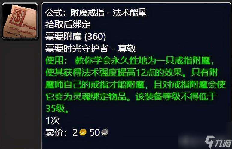 公式:附魔戒指 - 法术能量系时光守护者尊敬获取。