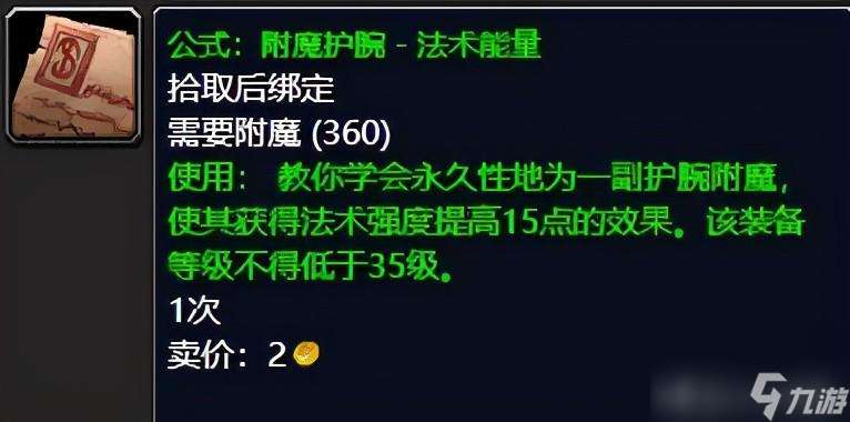 公式:附魔护腕 - 法术能量图纸系刀锋山血槌地卜师出品。