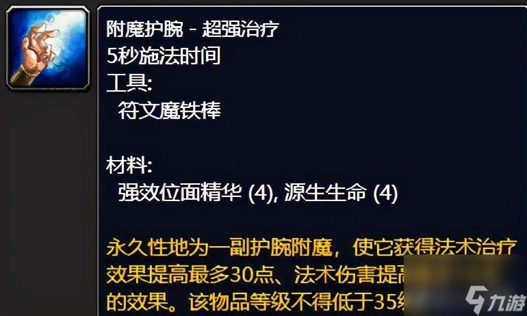 公式:附魔护腕 - 超级治疗系萨尔玛声望友善购入。