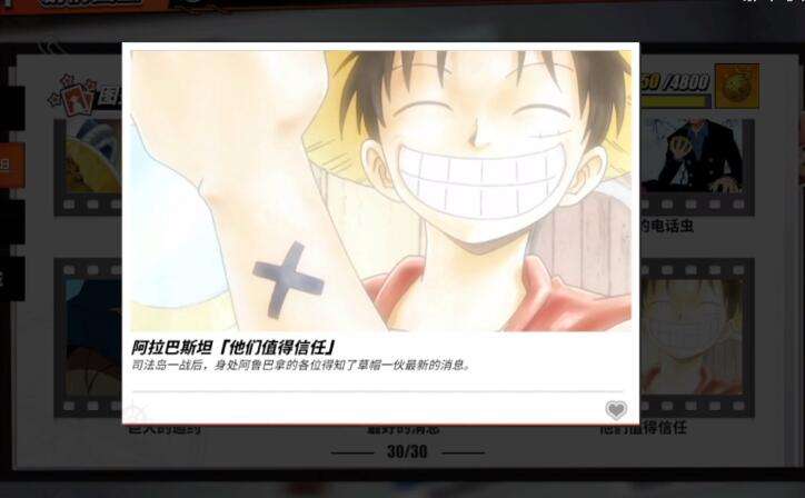 航海王热血航线游戏里除各种任务需要完成,在探索地图的时候,还会解锁各种剧情图鉴。他们值得信任就是图鉴之一,来到阿拉巴斯坦的回忆点这里,将路飞放进入并点击回想即可。想知道图鉴具体位置,大家可以看看下面十大评测整理的内容。