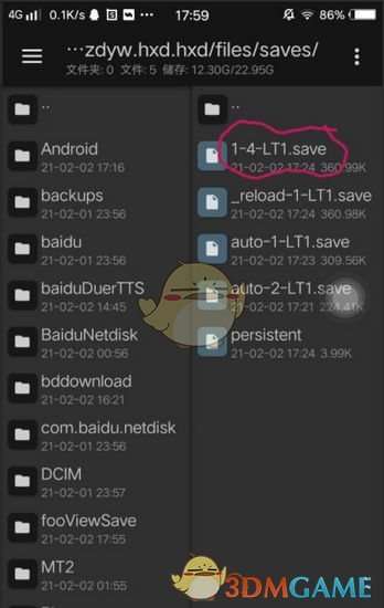 3、在进入到游戏之后,能够发现1-2-ly1.save,这个就是游戏的存档文件,它的格式基本上都是【XX时间.save】,有需要的玩家考验通过这里替换或者提前游戏存档。