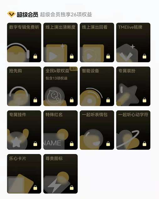 此外,QQ 音乐“超级会员”权益还涉及智能硬件、专属装扮和挂件、图标、特殊红名、乐心卡片、一起听表情、心动字符等。