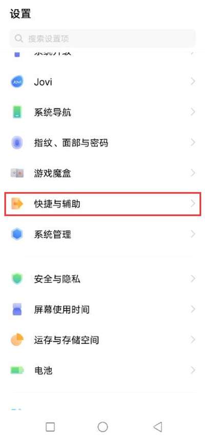 1、打开设置,点击快捷与辅助。