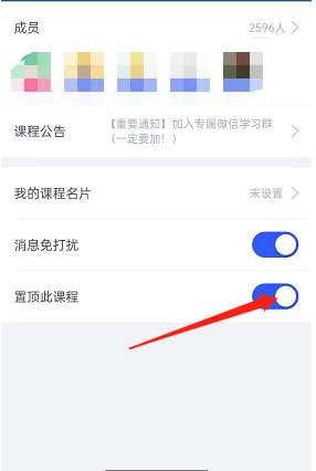 3、最后,选择如图的【置顶此课程】,开启就可以了。