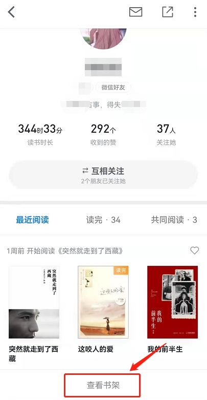 4、最后在这用户们就可以看到好友的最近阅读、读完以及共同阅读的书籍了。