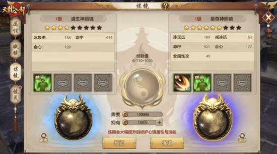 为了进一步提升护心镜的属性,少侠可从炼镜界面中,将自己无用的护心镜转化为当前使用护心镜的经验值。通过提升护心镜等级从而提高属性。