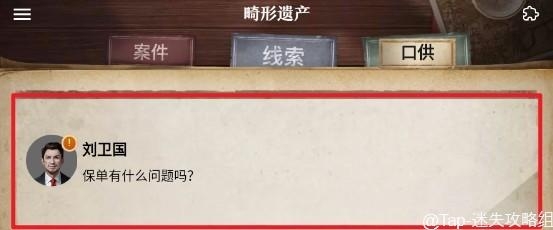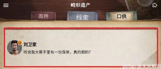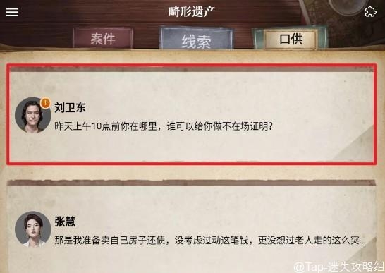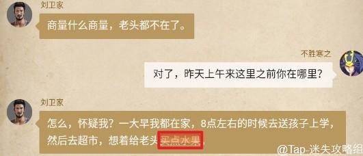 21、口供界面·刘卫家:点开与刘卫家的聊天界面,再点击下方开始对话(最后会有2个选项,选任一项皆可 )。21X1