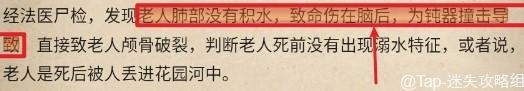 10、线索:老人肺部没有积水,致命伤在脑后,为钝器撞击导致。10X1