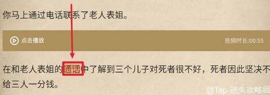 一位中年人找上们来,希望能拜托探案馆找到他失踪的父亲。根据这位中年人描述的情况来看,他怀疑保姆与他的父亲失踪有关。最后,失踪的老人终于找到了,不过已成一具尸体,而在征询的过程中,来自探案馆的你还了解到老头子除了这位中年怀还有二个孩子,且关系都不和,凶手到底会是谁?
