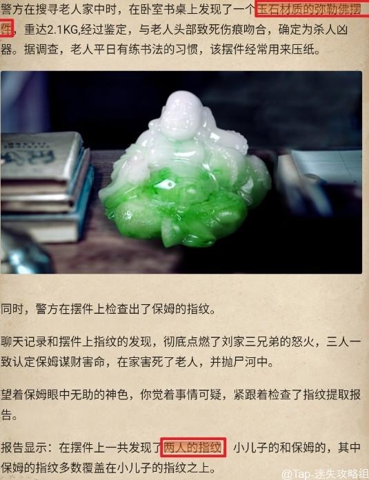16、线索:玉石材质的弥勒佛摆件、两人的指纹。16X1