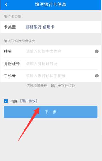 5、之后,输入想要绑定的银行卡号后,点击“下一步”。