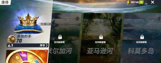 上面的两个都是我们新手时期就可以免费获取的,然后升级到五十九级这样子就可以用了,这个不建议大家升满了,然后基本上T1的图都是可以用了,新手玩家不需要执着于金色鱼竿,等我们到了18级以后就可以去开了,这时候需要过关的图多了,后续的话会不够用的,30级的时候就可以获取这个T3鱼竿了,等我们到了45级就可以获取T4鱼竿了。