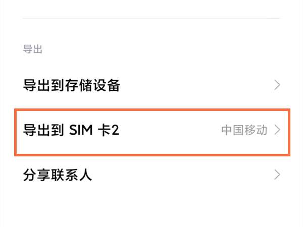 3、选择导出到SIM卡,选择相应的卡即可。