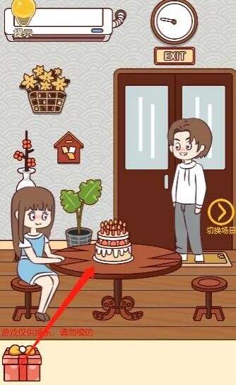 2、切换回左边的场景,将礼盒放到桌子上面,顺利过关