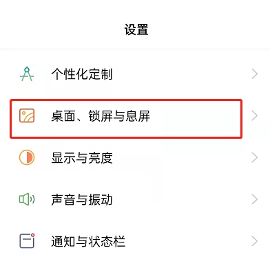 1、来到设置页面,选择桌面、锁屏与息屏。