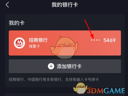 5、找到已绑定的银行卡,点击右上角的三个点,解绑银行卡;