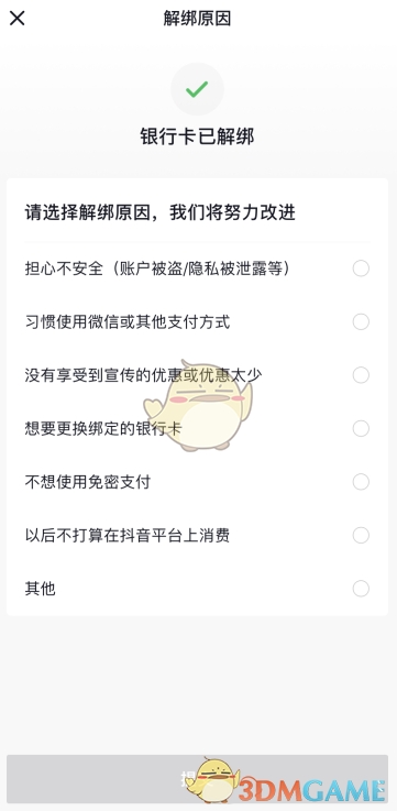 8、这里就解绑成功了,大家选择一个理由提交就可以了。
