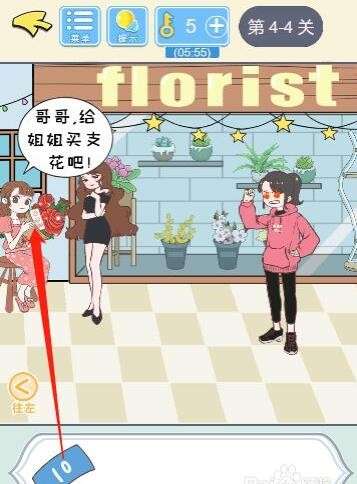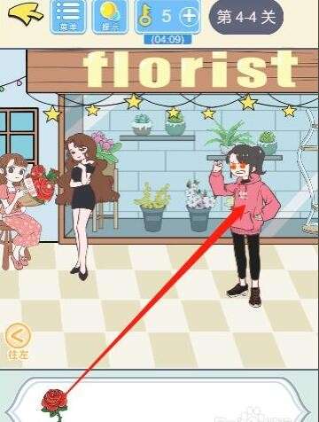 2、将找零的十块钱交给卖花的姑娘,点击拿走姑娘手中的玫瑰花