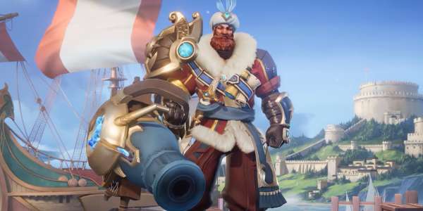 这款皮肤的主题为航海,整体色调以红色为主,代表进取,同时搭配一些代表海洋的蓝色作为点缀。黄忠身穿精良的服装,肩甲的设计来源于船头的结构,武器除了手中的重炮之外,还有一只手拿着一把刀。