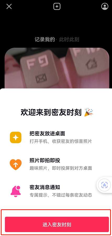 2、进入后会有一个提示,点击进入密友时刻即可成功开启该功能。