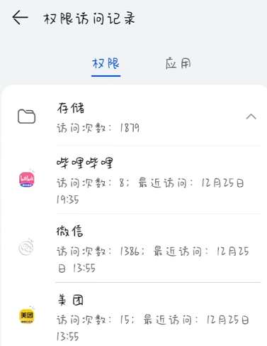 4、在这里就可以看到各种app要求授权的权限访问次数了。