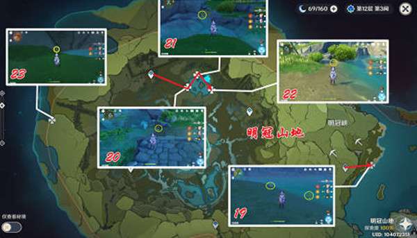 4:第四个区域就是在明冠山地了,采集点是十九至二十二,差不多耗时一分钟,一共可以获得五个嘟嘟莲;