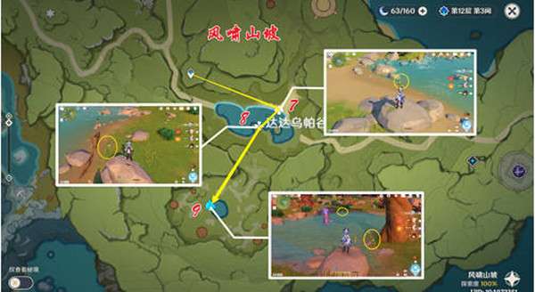 2:第二个区域,风啸山坡,采集点是七到九,耗时应该也是两三分钟,然后一共可以收集到七个嘟嘟莲;