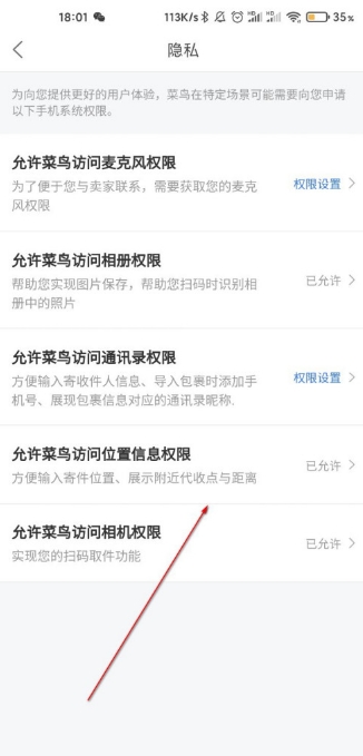 菜鸟裹裹位置信息权限怎么关闭?