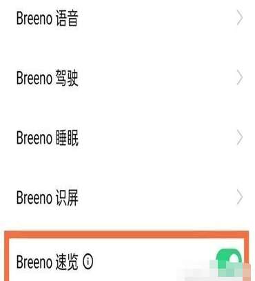 3、在Breeno页面将【Breeno速览】右边的开关关闭即可。